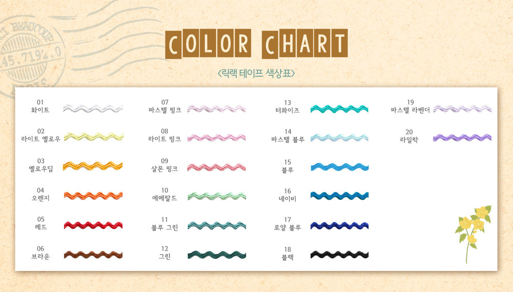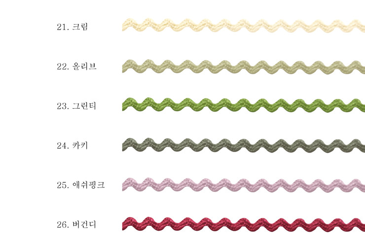 인형 옷이나 작은 소품 제작에 알맞은 릭랙(리크랙) 테이프예요.